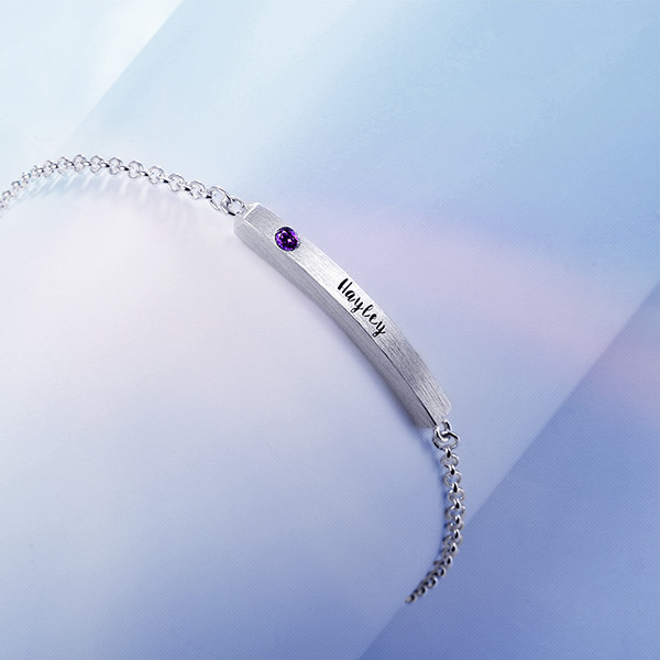 Full of intrigue and beauty, this bracelet is accentuated by the 4-sided, vertically dangling charm. Its simplicity exudes elegance as it proudly displays your name.Personalize this layered bar bracelet with your name, date or initials and it will be engraved just for you. Choose between Sterling Silver, gold plated or rose gold,which will showcase your exquisite taste in jewelry.