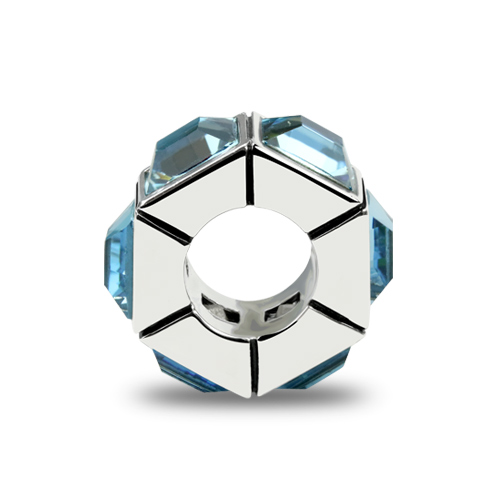 This hexagon bead is made of 925 sterling silver.There are six crystals glittering on the surface .These square blue gemstones can bring wisdom and foresight for people who wears it, and it also represent the happiness and brave heart.