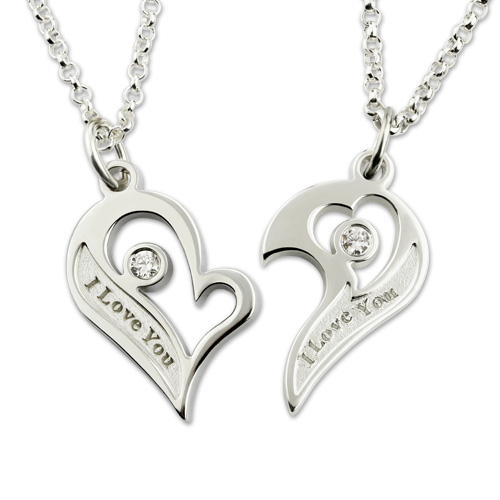 Share your love with this Sterling Silver heart pendant .This Couples Broken Heart Necklace is a great his and hers gift. Each half of this breakable heart shaped necklace can be engraved with a personalized name or date. Wear the other's name engraved on each half of this couple's necklace set. With their name around your neck, they will be with you always.