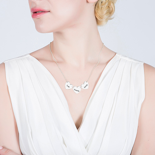 Wear the heart necklace as a symbol of your love for important people. This heart charm necklace can be customized with three to five heart shaped pendants, which can all be personalized with a name, date or special message! It is one of the most special and personal pieces of jewelry you can own or give as a gift.