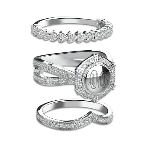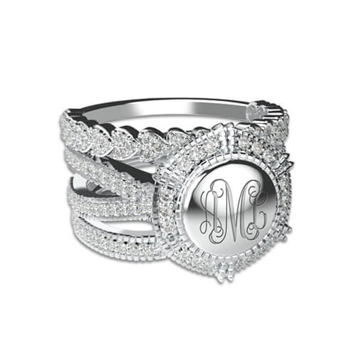 Our newest stackable monogram ring is so pretty you won't want to take it off.The sterling silver engraved ring has a center monogram surrounded by a beautiful diamond. This dazzling ring design like a shining crown. Everyone is going to love this personalized monogram ring and comment on it.