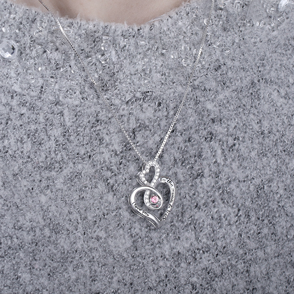 The Infinity Custom I love you to the moon and back Birthstone Necklace makes a beautiful gift for that special someone. Infinity Birthstone Pendant is a beautiful symbol of love that never ends.This stunning necklace comes on a sparkling birthstone, The front of the heart pendant are the words, "I Love you to the Moon and Back", to show your love with sweet words. making it a perfect gift for a mother, grandmother, or that special someone in your life.