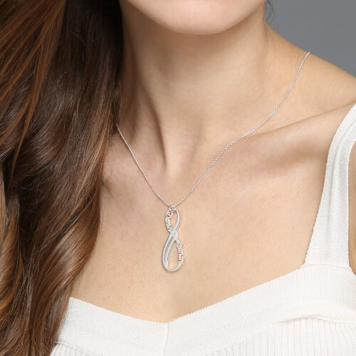 Custom Vertical Infinity Names Necklace Sterling Silver