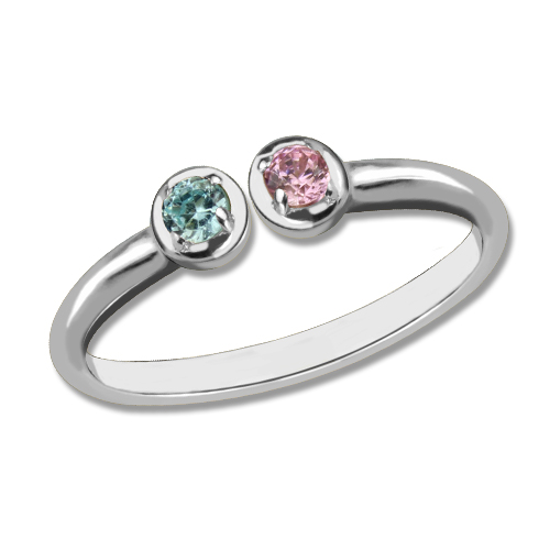 2 Stone Dual Birthstone Cuff Ring Sterling Silver - Fully customizable with any two birthstones, this dainty Dual Birthstone Ring is an easy, elegant way to express your individuality. Pair your birthstone with your love's, create a modern take on a Mother's Ring, or combine any two stones you'd love to see together for a design that's uniquely yours.