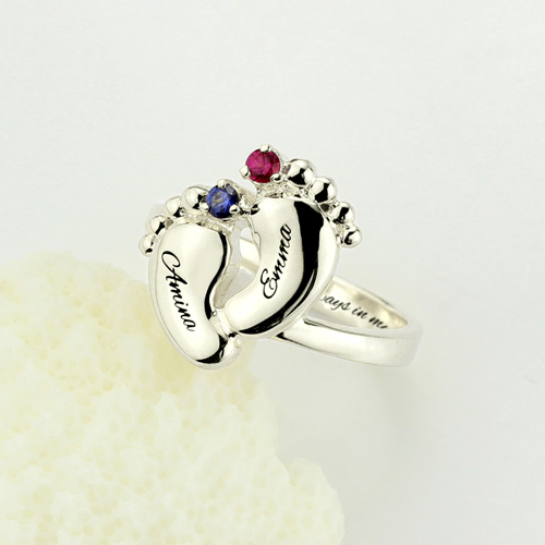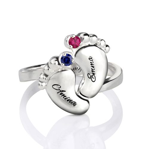 The Baby Feet Birthstone Ring is the perfect gift to mom. This special ring can be engraved with any name or date to make it extra personal.Show any phrase you want to say inside of ring.It is a perfect gift for yourself or any family member,or significant other for any special occasion.