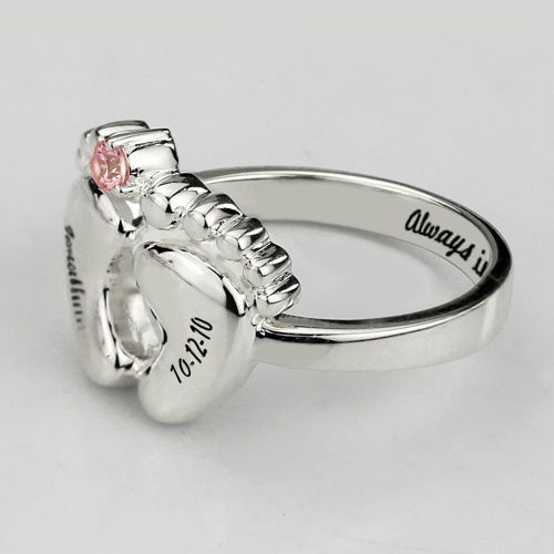 Personalized baby feet rings, the perfect silver rings to celebrate the family milestones in your lives.We carefully apply name and date of your choice to either side of the baby feet to create these beautiful, highly personal, celebration rings.