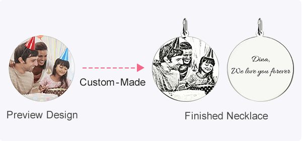 This Photo-Engraved Black Titanium Steel Dog Tag Necklace can be customized with your own photo! Simply choose a photo, upload it with our online customization tool and and show engraving on the back.his dog tag photo necklace is the perfect gift, because it highlights a wonderful memory. We have five chain lengths are available from 14 inches to 22 inches. The Stainless steel on this personalized photo pendant will never tarnish so you can always remember this special day!