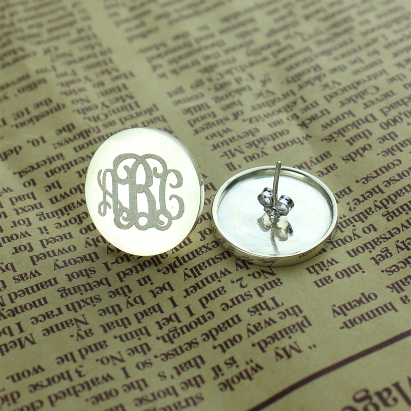 Engraved Monogram Stud Earrings Sterling Silver - There is no better way to show off a little bit of who you are than with a beautiful pair of Personalized Monogram Initial Earrings in Sterling Silver!