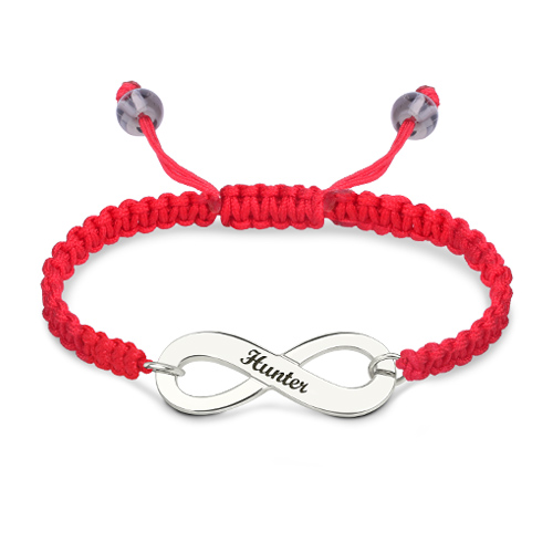 Present your forever love with this Engraved Infinity Symbol Cord Bracelet. The infinity symbol represents eternity, empowerment and everlasting love. It is the ultimate gift to express an unending sentiment of love or friendship. Customize your own today !The Infinity bracelet truly is the most unique and beautiful bracelet you will ever see.