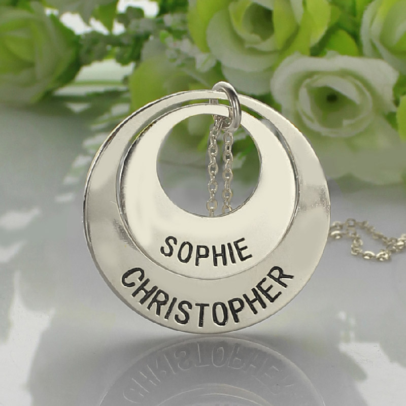 Gifts For Mom - Engraved Ring Mother Necklace Sterling Silver - Celebrate Mom or Grand-mom with our stylish disc name necklace to show her how much you love her, and appreciation.