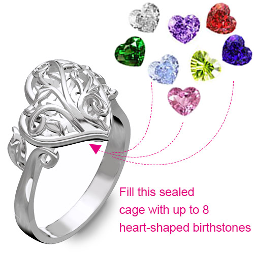 This family tree heart cage ring is the perfect treasure to represent your loved ones. Its simple, choose your desired heart birthstones as they will be loosely placed inside this caged tree. This ring can be personalized with 1 to 8 birthstones. Available in Platinum Plated,Gold Plated and Rose Gold Plated.It is best gift for Mother or your loved one.