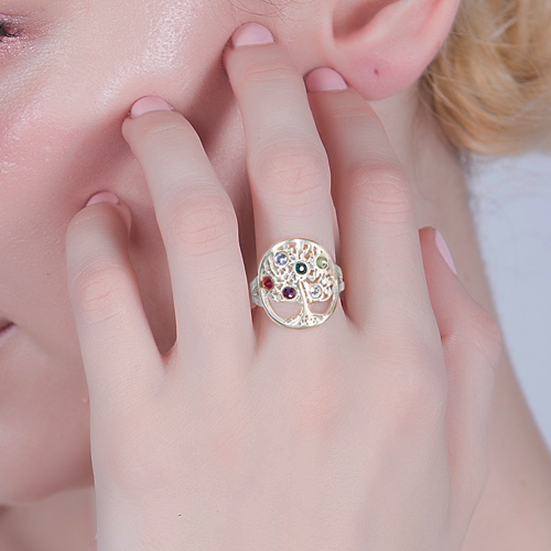 The Family Tree Birthstone Ring is the perfect gift to give a mother or a grandmother to let her know how important she is and how much she is loved. A mom is the person who holds the family together, show it off with this beautiful family tree ring with birthstones!