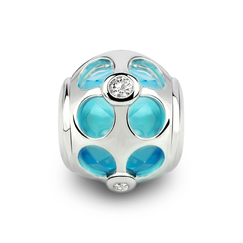 Visually stunning, this refined sterling silver charm with blue crystal and shining stones formed romantic 4 Leaf Clover shape. The dazzling blue hued stones will grab anyone’s attention and makes it a stand-out piece in your collection.