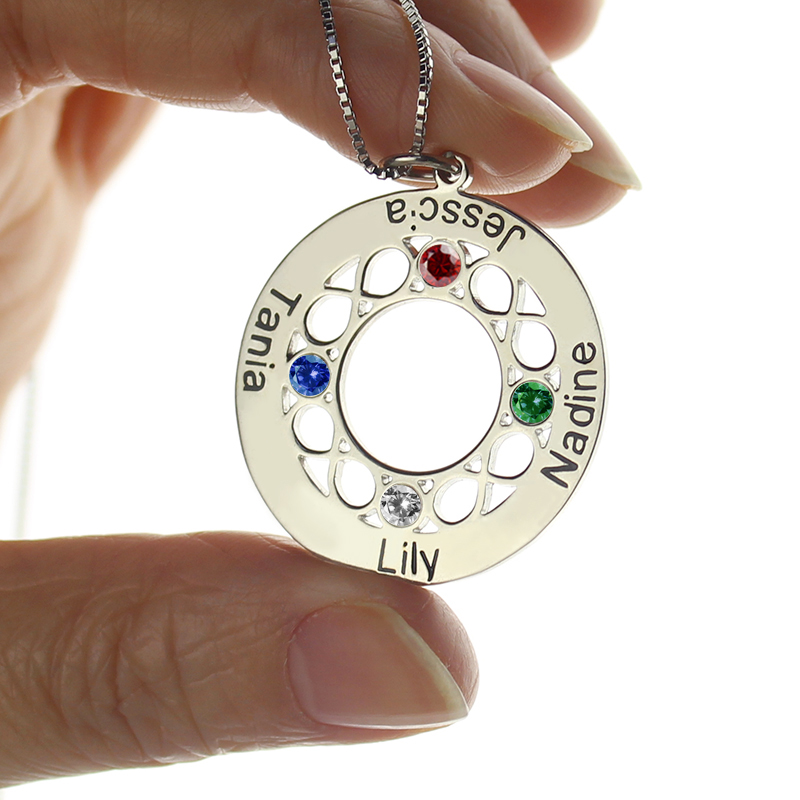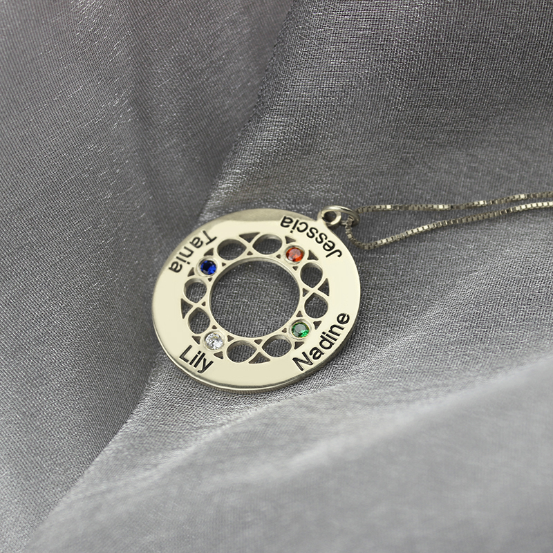 Grandmothers Gifts - Infinity Family Names Necklace - Infinity is eternal representative - Using infinity to combine our family like this Infinite circular pendant family necklace. Engraved family name with their birthstone on it. Keep more close! It's the great christmas gift for grandma & Mom!