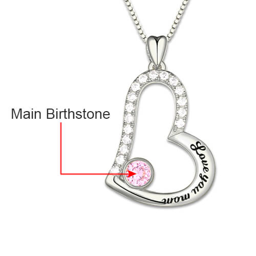 An elegant and heartfelt way to say "I Love You Mom." Your mom is always there to encourage, guide and comfort you. Her love is a precious gift you carry with you wherever you go. Here is a lovely gift for your Mother. The heart design signifies your love for your MOM and the birthstone can commemorate your birth date or hers.The engraved " Love You Mom" 925 sterling silver pendant sparkles with a glittering diamond , symbolizing your love today, tomorrow and always! Now, give Mom an enduring reminder of your love with this diamond pendant necklace!
