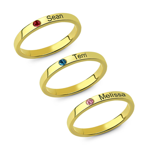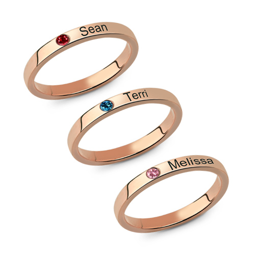 Smart, stylish and meaningful,this personalized stacked-look ring helps Mom celebrate her family in a clever way. Crafted in sterling silver, each row in this glistening style features the birthstone, you can select up to three total. Further customize the design with the three corresponding names or words of your choice - each up to 10 characters in length. This thoughtful statement of style is destined to make a big impression on Mom.