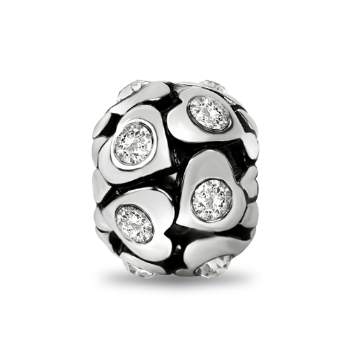 A masterpiece of intricacy and exquisite details, This bead is formed by multiple heart with a shining crystal on the middle for each of them, showcases a lovely pattern of connected hearts, symbolizing bonds of love and affection.