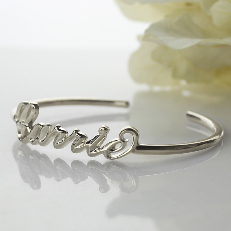 Personalized Sterling Silver Name Bangle Bracelet - Our Carrie style 3D bracelet are different from ordinary products, it has more luster and administrative levels. You can use this effect ordering and any words or any name you like.
