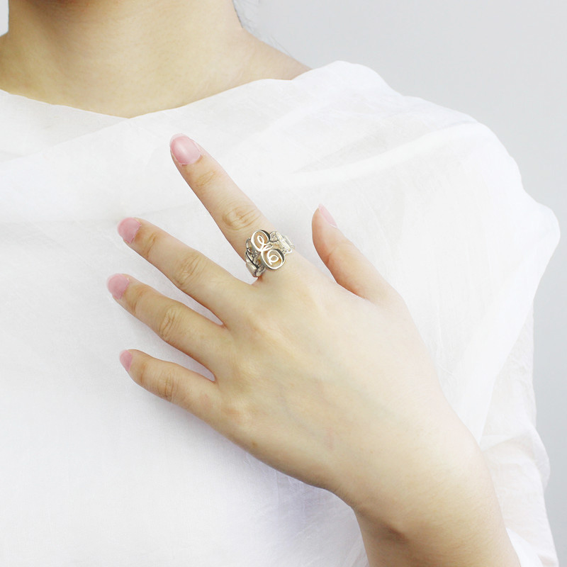Personalized Gifts Fancy Monogram Ring Sterling Silver - This monogram ring made with high quality 925 sterling silver, this is a piece that will be treasured for a long time to come. It's a cool christmas gift. Traditionally, monograms are crafted in the following order: first name initial to the left, followed by the last name initial in larger text in the middle, and finished off with the middle initial on the right. Please type your initials in the order that you wish for them to appear, with the last name initial in the center.