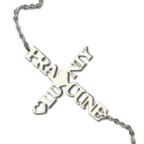 A fine glossy Two Name Cross Necklace made of exquisite silver, this piece will be a delightful addition to your jewelry ensemble. Have us ship one to you with the names you wish to adorn the necklace with.