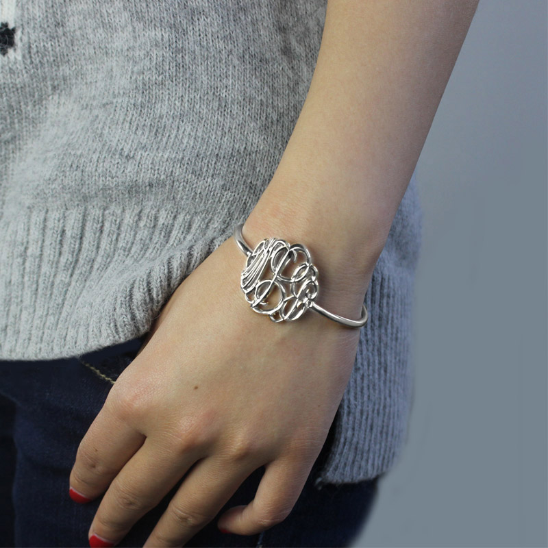 1. A monogram is typically structured with the last name as the large initial in the center, the left initial is the first name, and the right initial is the middle name.