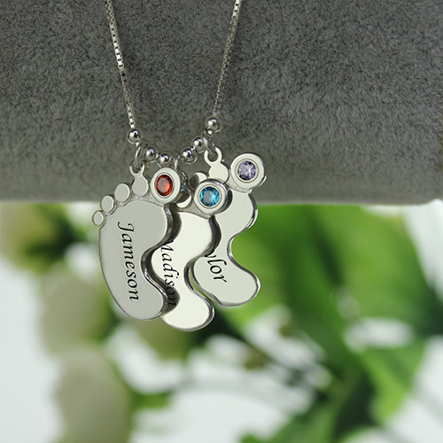 Moms love anything that celebrates their children, not to mention this lovely Baby Feet Necklace of top quality, meant to last a lifetime. Engrave up to five baby feet charms with the names or dates of the children and birthstone on each pendant. Celebrate the miracle of birth with this commemorative necklace. It is a great gift for mom at any time of the year like birthdays, Mother's Day, or Christmas. Any mom is sure to love and appreciate this necklace. This adorable little charm necklace is top quality, meant to last a lifetime.