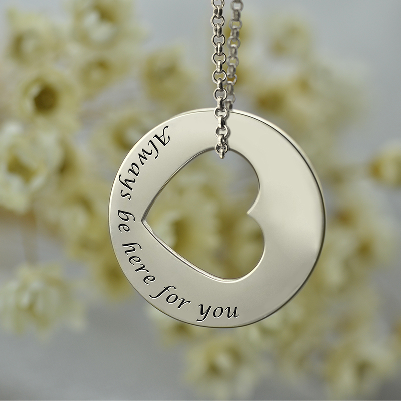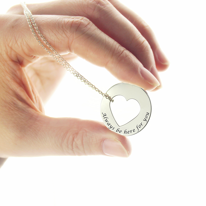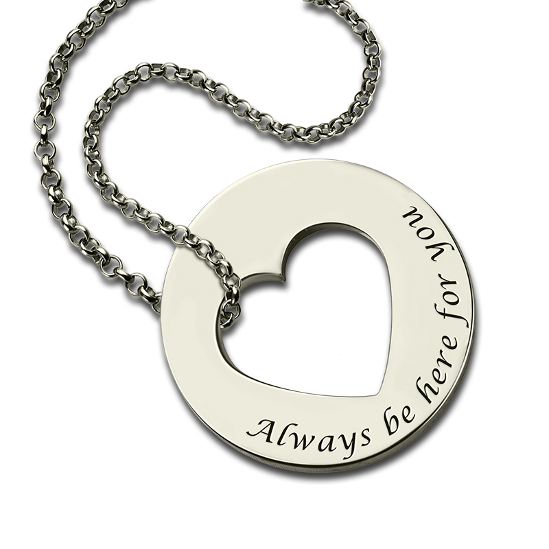 It makes for the perfect gift to give to significant other, family member, girlfriend, gift for Mom, Valentines Day or any occasion. Choose any of our presented quotes to engrave on this cut out heart necklace or write one of your own!