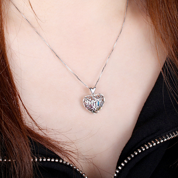 This mother's filigree heart-shaped pendant can be personalized with one to eight 4.0 mm birthstones of your choice, floating within the pendant's cage design.The words, "Mum" are spelled out on the front of the pendant and become part of the confine. This necklace is perfect for a mother or grandmother to hold the birthstones of their loved ones.Exquisite handwork in 925 sterling silver. It's the perfect gift for Mother's Day.