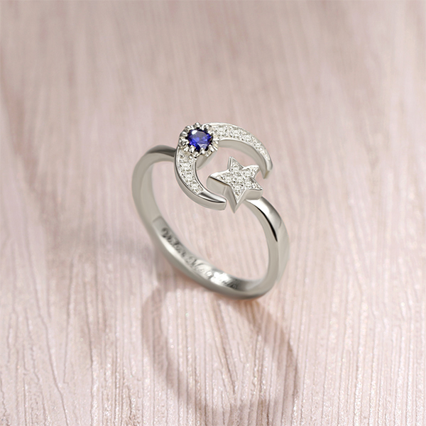 Custom Engraved Moon And Star Birthstone Ring Sterling Silver