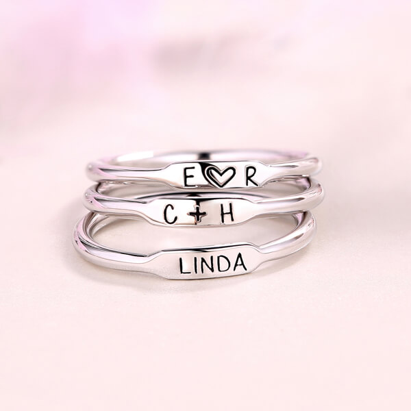 With clean lines and an impeccable multi-band design, this engravable sterling silver stackable bar ring is a modern master piece. It will be a fantastic friendship or family rings, since it could engrave different names, which make it a sweet, special also a meaningful present for your friend or any of you family members, so that to tie you together. Ring Set will be suitable for any occasion. You may wear them singly and separately or as a knuckle ring. Unique and special ring set design will be most street style for all seasons. No more hesitate but just buy it right now.