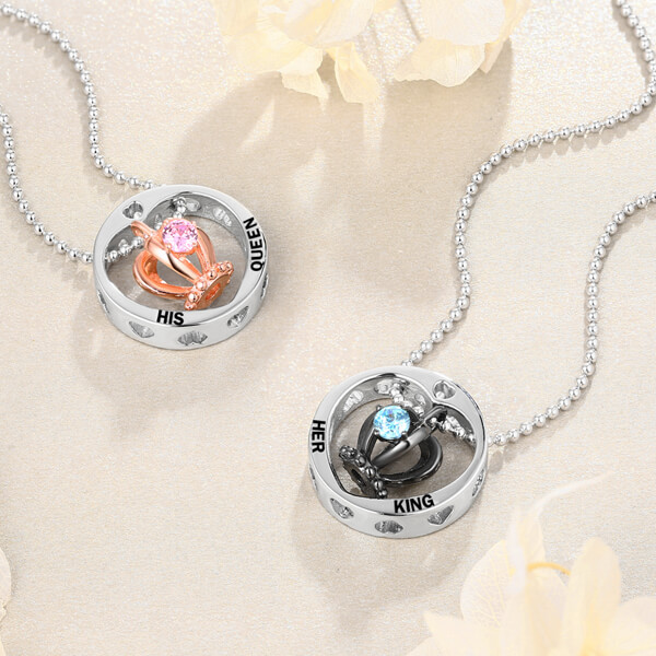 Exquisitely handcrafted in 925 sterling silver,this radiant birthstone crown has a perfect combination with the exquisite circle.The circle beautifully hollow out two hearts(a big one and a small one),which symbols everlasting love. It is not only for one who love this fancy necklace,but also suits for couples.This stylish necklace will be suitable for any occasion,such as birthday party, valentine’s day ,engagement .No more hesitate but just buy it right now.