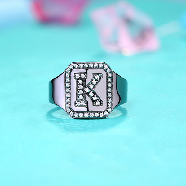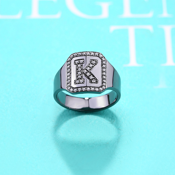 The individualized personification!!!The feature of the ring is the initial decorated with full gems which highlights the characteristics of the ring.The unique black plating has its characteristic styles.The customized initials provide a sense of exclusivity for this ring, which perfectly combines our customized jewelry and unique style.