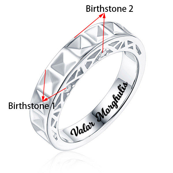 Nothing is as sweet as when love brings two people together! This alluring ring make the rings and architectural styles blend together! Showcasing a unique design of Valentine's Bridge band with solid stripe molding structure. This ring is in sterling silver and beautifully plated platinum. You can make this ring personalized with your choice of 2 birthstones, two birthstones represent two people. Perfect for gift giving, Strong demand is anticipated, so don't delay. Order now!