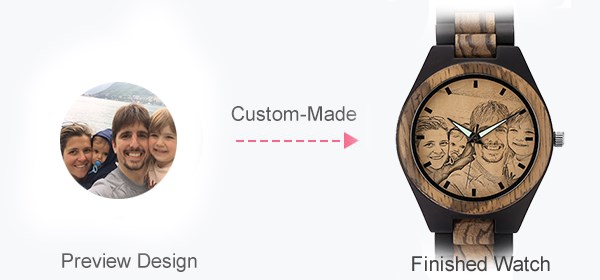 Wooden wrist watches are the ideal gift choice for your loved ones. It's handcrafted with 100% natural wood without paint or chemicals, making them hypo-allergenic and suitable for people with sensitive skin. Replacing our example photo with your own photo to create a personalized gift for yourself or everyone you loved. Cherishing your memories and create a treasured keepsake gift with our custom watch template.