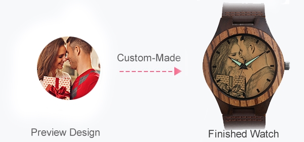 The watch is made with 100% natural ebony wood and Zebrawood, the leather strap is soft and durable, healthy and comfortable. It is safe on the skin and won't irritate or cause rashes. Personalized wood photo watch with your own picture makes a fantastic gift for that special man in your life, you can also engraving on the back up to 60 characters. As a gift, it is sure to impress and suitable for many different occasions.