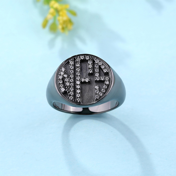 This distinctive personalized Circle Monogram with Cubic Zirconia features a classic black plating. The small gems inlaid in the circle monogram make the ring more elegant overall. You can engraved with your initials to create a one-of-a-kind tribute you'll always keep close. The best thing about this ring is that it can be gifted to a loved one of either gender by getting their initials engraved on the piece. Place your order today!