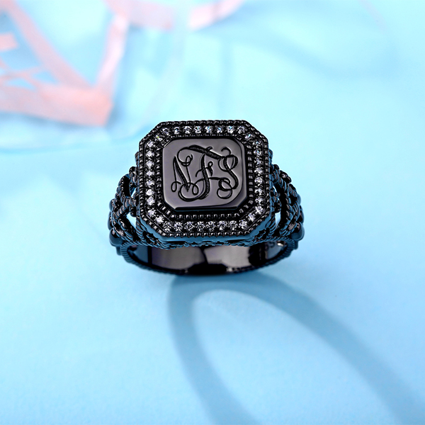 Our classic Square Monogram CZ Vine Ring is beautiful and can adorn any finger on your hand. It is a special design that will never go out of style. It is the perfect monogram ring for men or for women! You can get up to three initials engraved on this monogrammed ring. Monogram jewelry is always a great gift to give, so why not give this beautiful personalized ring?