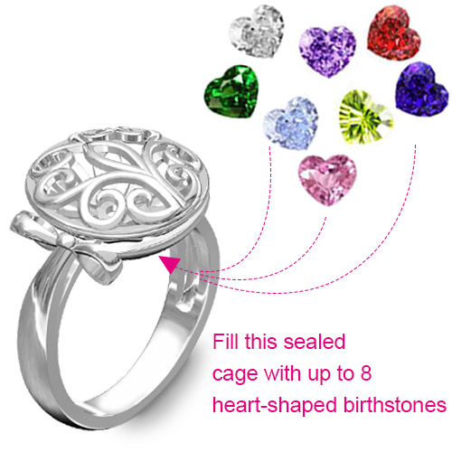 This Round cages with family tree on make this the most exceptionally personalized and one of a kind gift you can give. Choose the cage that most represents the amazing woman ,wife or mother who will be wearing it and each birthstone as family members. It means family members get together .The large cage size allows space for up to 8 heart birthstones to make the ring even more special!Any words you want to express you can engrave inside of ring .