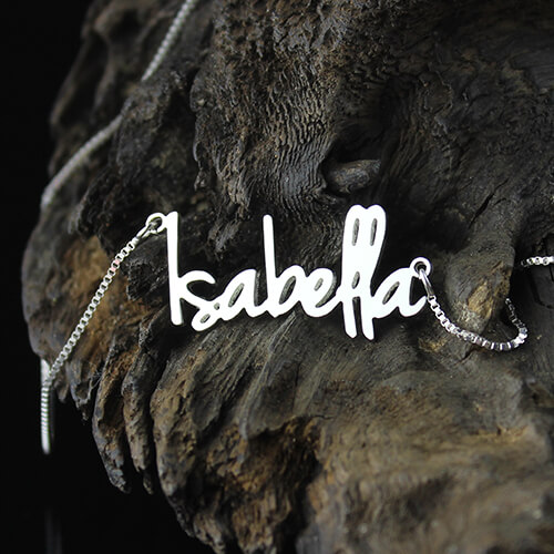 Small Name Necklace For Her Sterling Silver- The personalized name pendant for Women in Extra Strength Silver is one of our smallest letter necklaces yet! This sterling silver name necklace comes with a unique font that can be customized with the name or word of your choice.