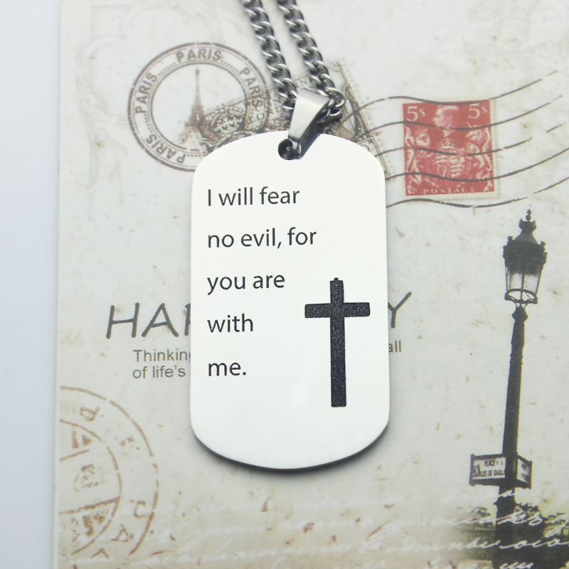 Titanium Steel Man's Dog Tag Cross Nameplate Necklace