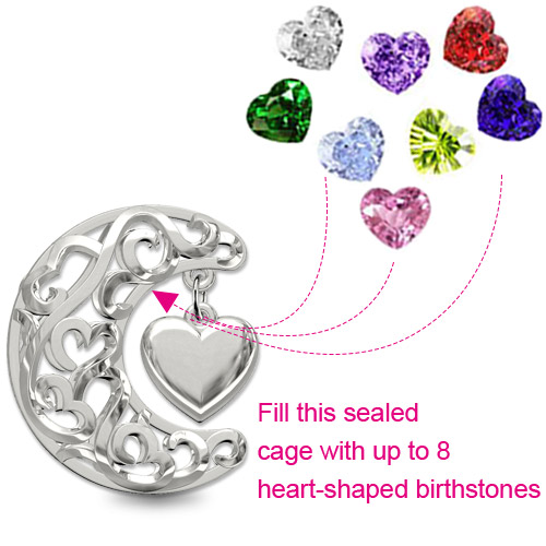 "Love you to the moon and back" necklace, give you the most loved one, tell her that you love her.This Moon Cage allows space for up to 1-8 heart birthstones to make the ring even more special! Choose Mum or Mom ,It is best gift for mother.