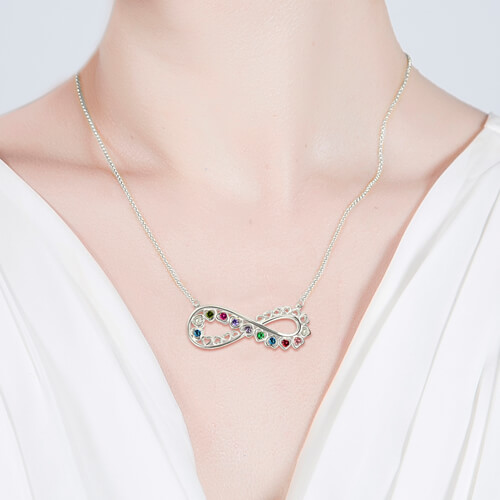 Showing off your infinite love for someone else just got easier and so much prettier with Infinity Heart Birthstones Necklace. Drawing on the infinity jewelry trend, we have taken the infinity pendant necklace and made it even more special by adding the opportunity to engrave up to 11 heart birthstones. This beautiful engraved infinity necklace makes for a perfect gift for mom or grandma.